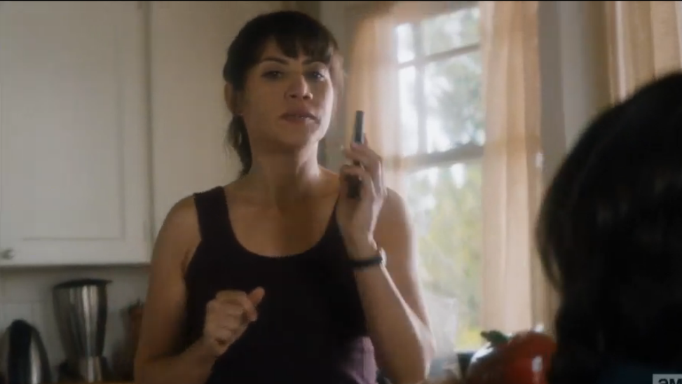 In the next clip, see Jessie whirl around, address a small group of fellow Alexandrians who appear to be gathered near her front stoop…see what happens when there’s no tv or internet any more? Neighbors get all up in each other’s biz…