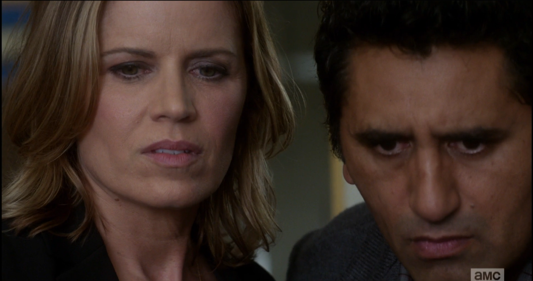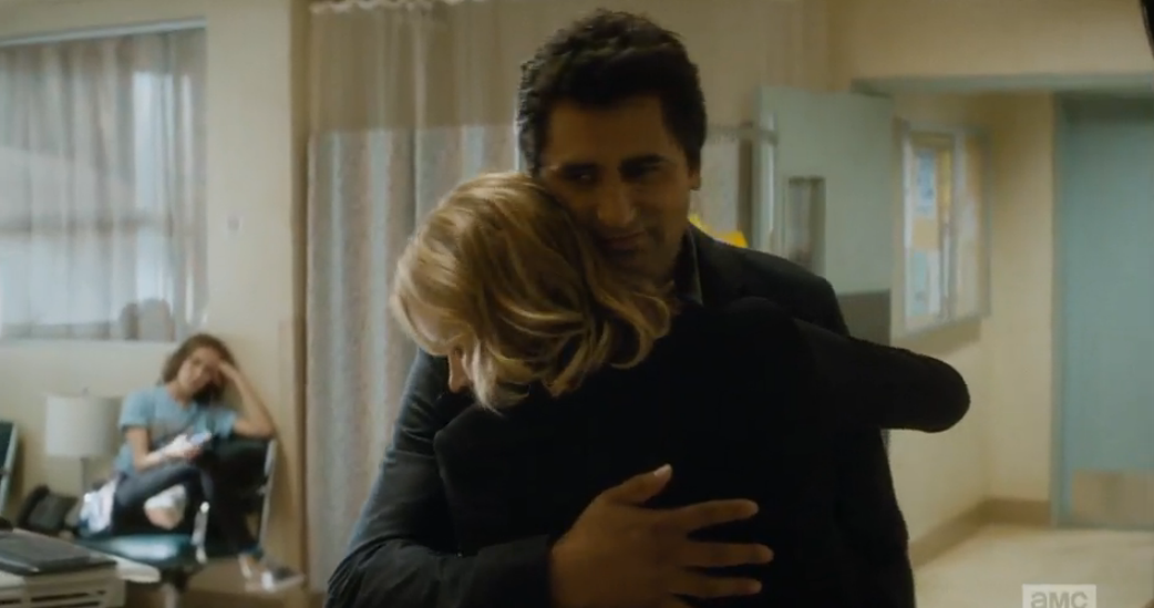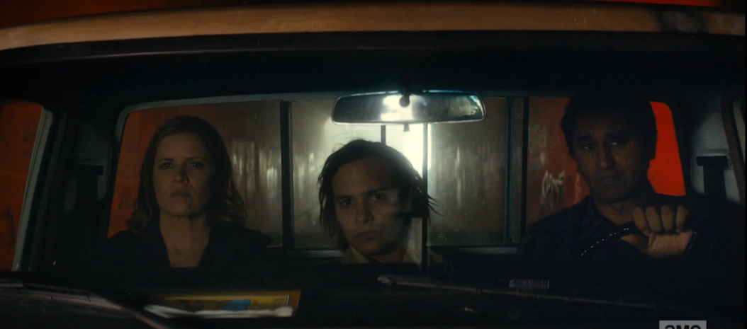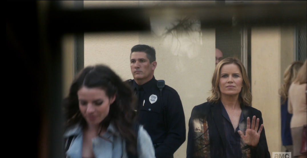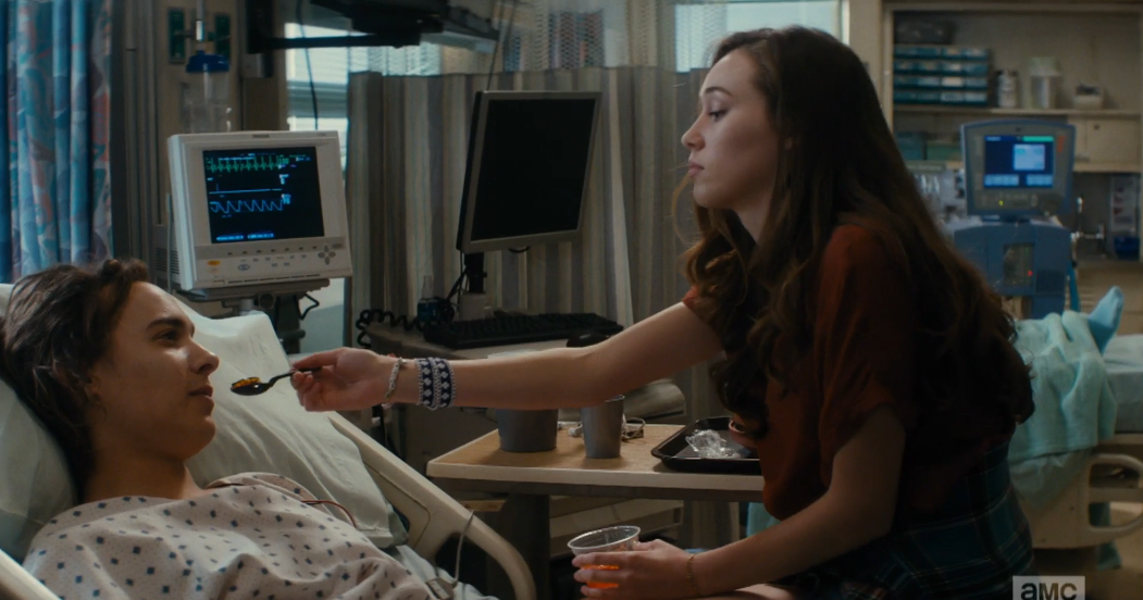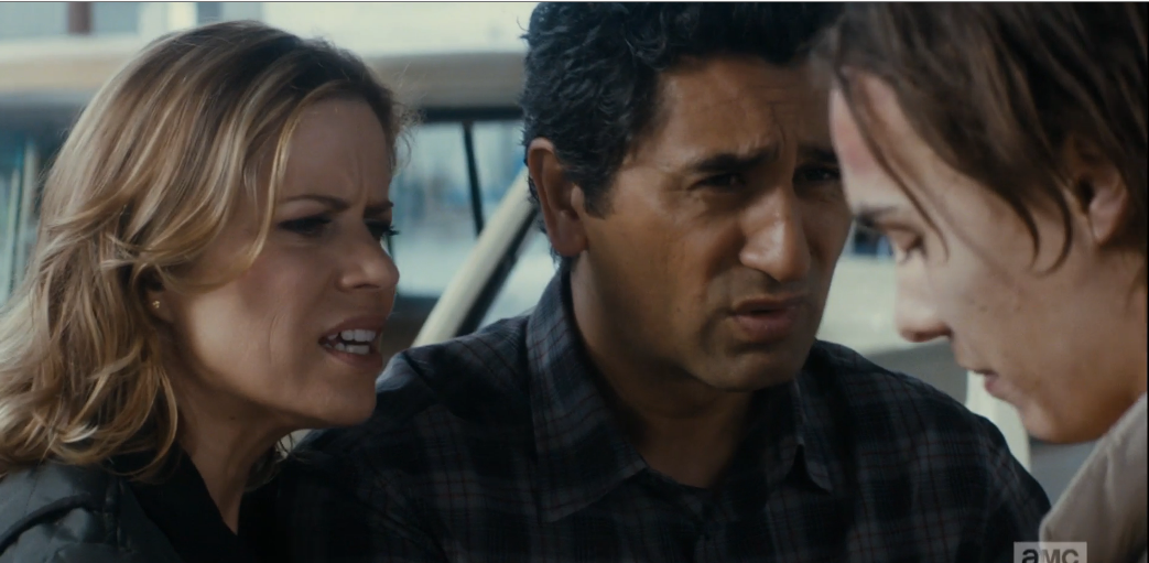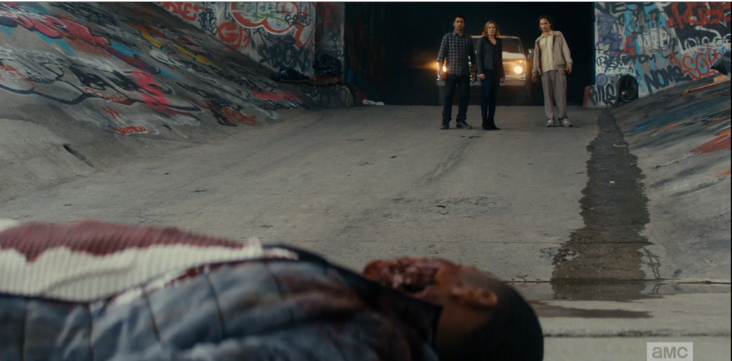 I loved many things about this pilot episode, but I must mention the artful pacing of it first and foremost…it was a 90-minute premiere episode, so after the first gripping sequence of Nick waking up in the squatter church and finding his reanimated junkie girlfriend, Gloria, feasting on a second victim, this episode slowed down just long enough to explore the complexities of the relationships between a mixed family, Madison and Travis, Travis’s ex, Liza, and their children, Nick, Alicia, and Chris. Despite the discord, confusion, and circumstances around the members of these combined families, we got to see the deep love and connection between Madison and Travis, and how their love and unconditional support of their children translated into us, the viewing audience, growing to care for all of these individuals as the episode played out, and rooting for them by the episode’s end, which left us viewers dangling by a deliciously bloody thread of viscera, and suspense.