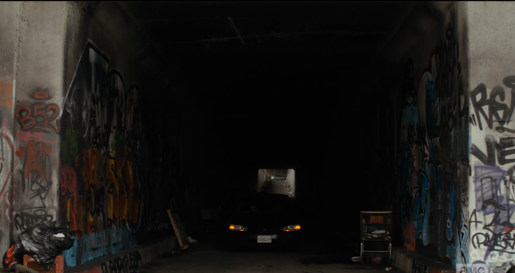 We see two peeps, shining flashlights and walking through a darkened pipe or sewer system…and then we see, and hear, this clip of Morgan: