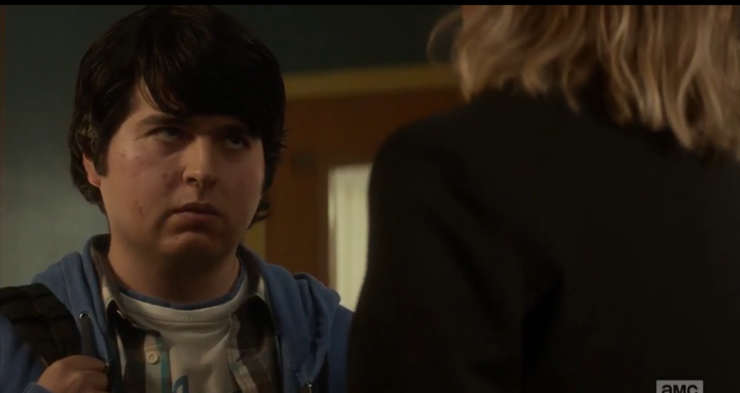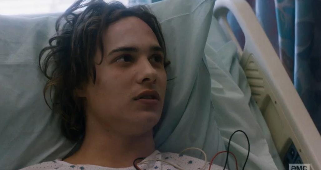 …Enid, hugging Rowan, who seems distraught over his shitty father’s death at the hands of Rick Grimes. As Enid hugs Rowan, her eyes meet Carl’s over Rowan’s shoulder.