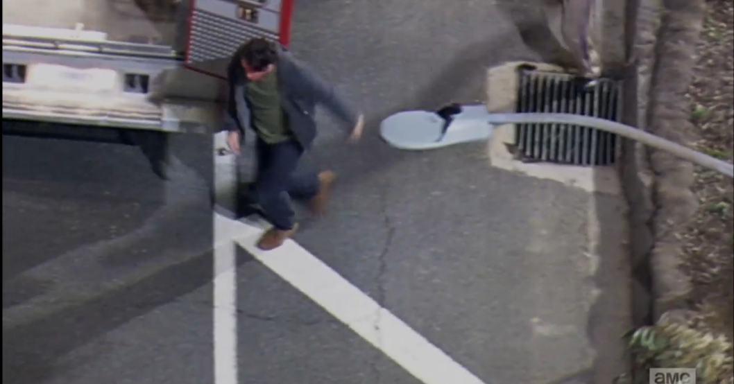The Entertainment Weekly article described how Andrew Lincoln, most probably during the filming of this scene, would sprint for 20 yards, then turn, and sprint 20 yards back, over and over again, for hours, in the blazing 95 degree Georgia heat, take after take, to keep it real, and believable, for the TWD viewing audience. “We’re suffering,” Lincoln said in the article. “And I think you can smell it. I think the audience can smell it when it’s not authentic, if I’m supposed to have run for two miles chased by walkers. You’ve got to be beat up.” Hear that, Emmy snubbers? Our man, Andrew Lincoln, is suffering for his art, keeping it real, time and time again, thus earning an unprecedented level of love and devotion from a whole world of TWD fans! #recognize