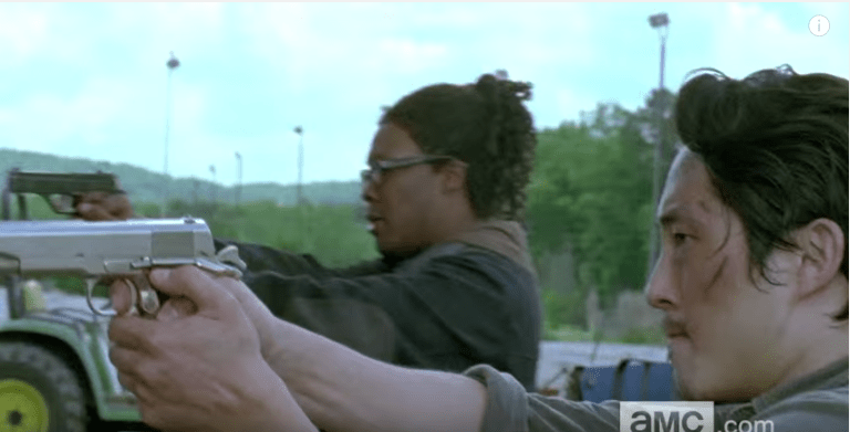 glenn and heath Published August 23, 2015 at 768 × 391 in barnfullawalkers v. The TWD Season 6 Trailer: The Breakdown As the walkers crash through the storefront window and lurch towards them, Glenn blows a walker’s brains away…perfect aim.