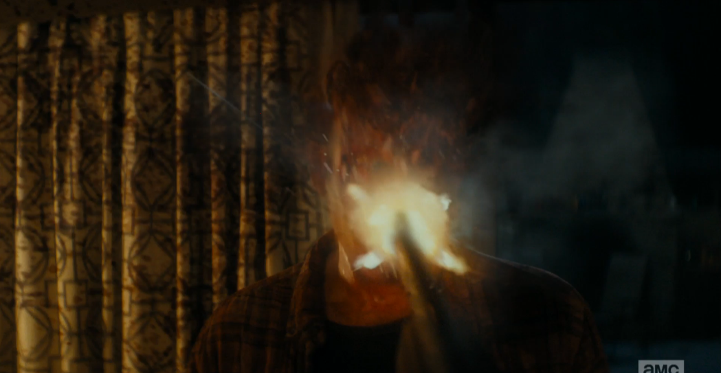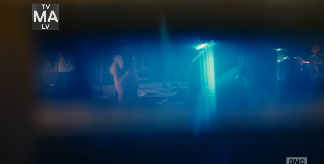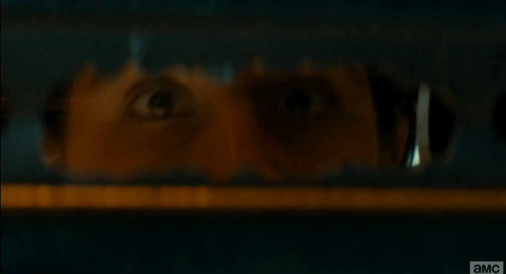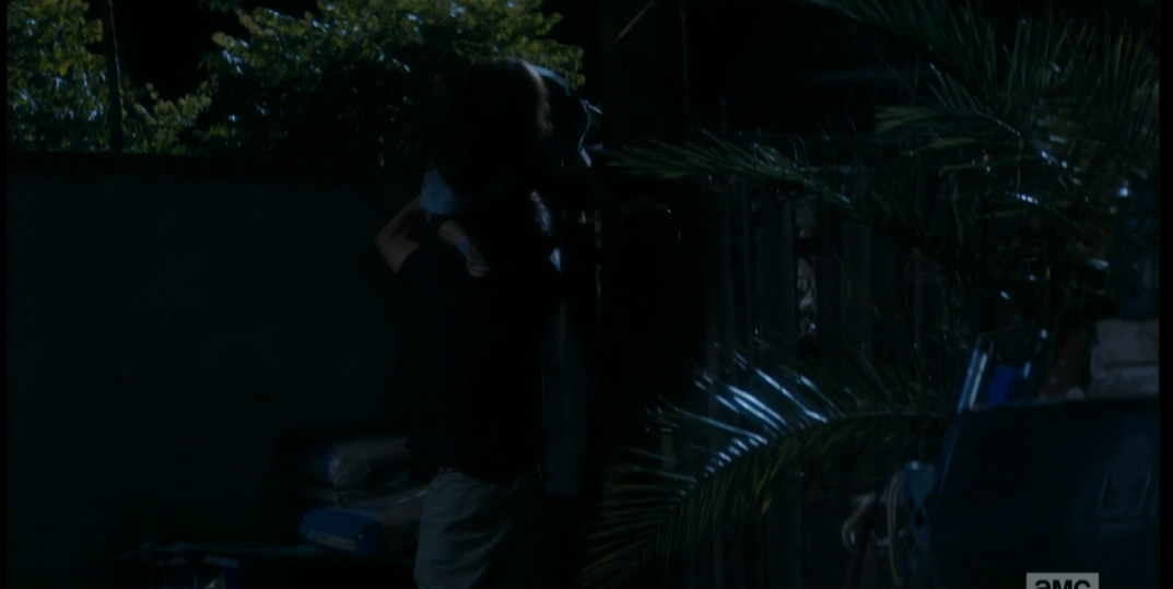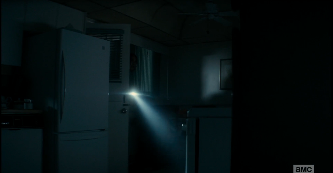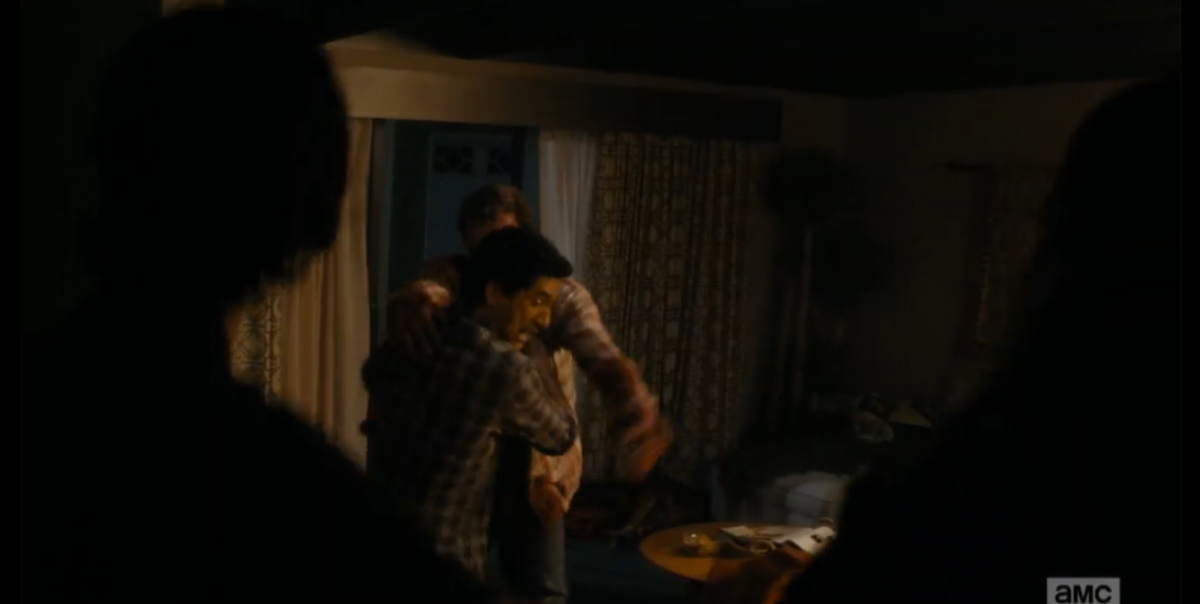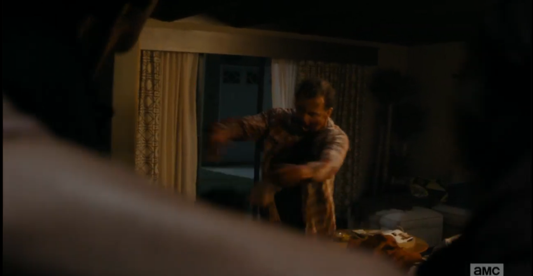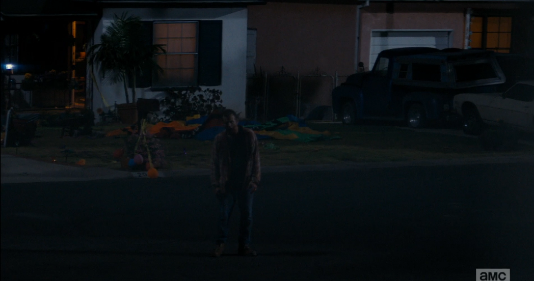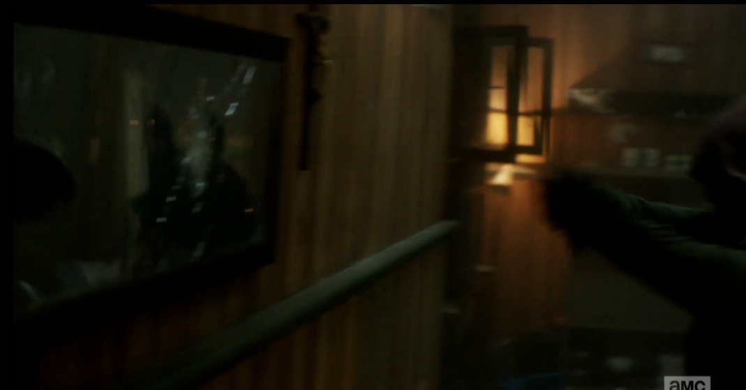 …as well as the fact that he would even walk closer towards this scene. But, upon some more reflection, after rewatching this episode, I came to the opinion that the character of Travis is one who needs to see something for himself, as close up as possible, for him to feel like he has a grasp of what is going on with a situation. He demonstrated this trait when he went to the junkie church in the pilot episode, and so, in my opinion, it’s consistent with his character to be doing this, now. I also feel like Travis is giving the slight chance that Dawson is merely sick and delusional, deranged, even (um, obviously), and that exploring that chance is worth one final effort. But, dude, seriously, grab a poker or some shit…just in case you need it! (Which you totally do…do peeps usually have fireplaces in L.A.?)