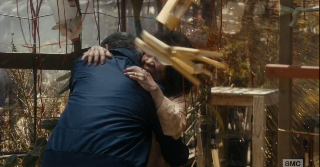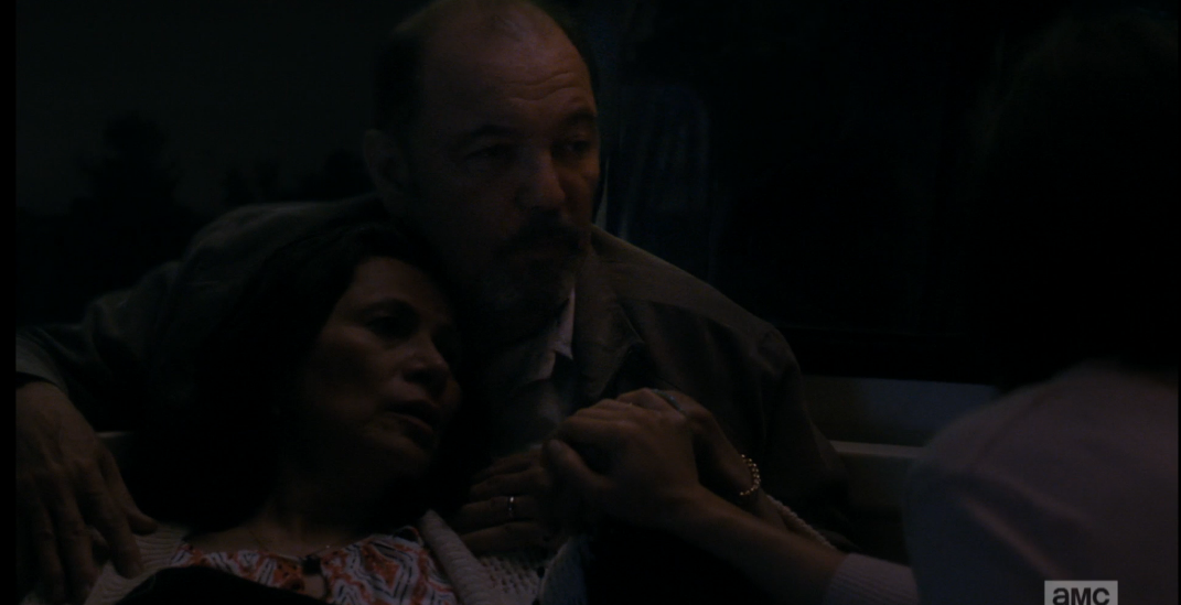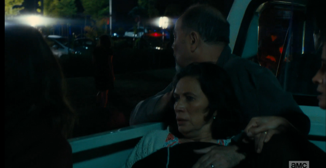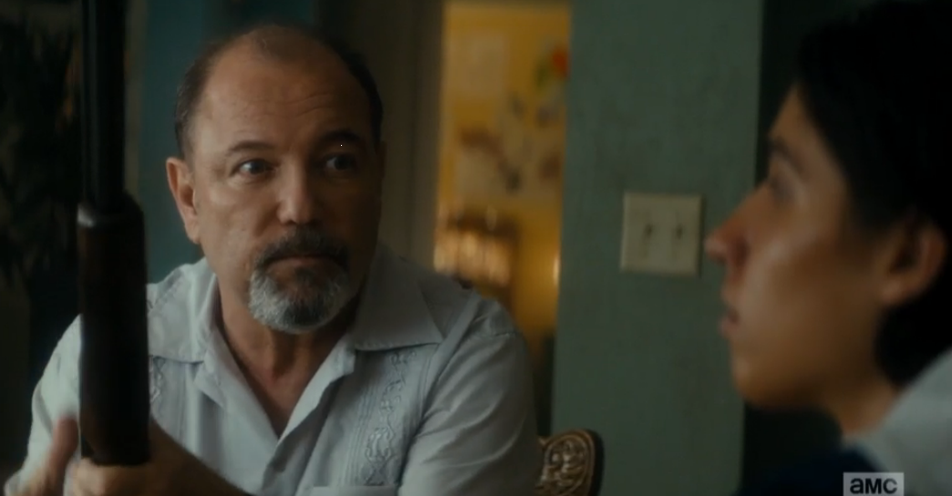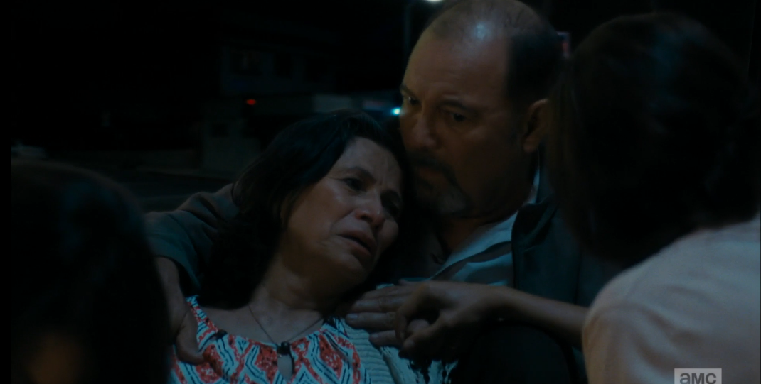 Daniel tells his daughter to calm down, that he knows where to go. Ofelia insists that they should go with Travis and his people. Griselda speaks up, tells Ofelia to trust her father, that he’s always looked out for them. Ofelia, torn between her love and loyalty to her parents, and what she knows is their best chance, walks out of the room, upset. Daniel and Griselda share a gentle joke between each other before Daniel turns back to his post at the window, peering through the blinds.