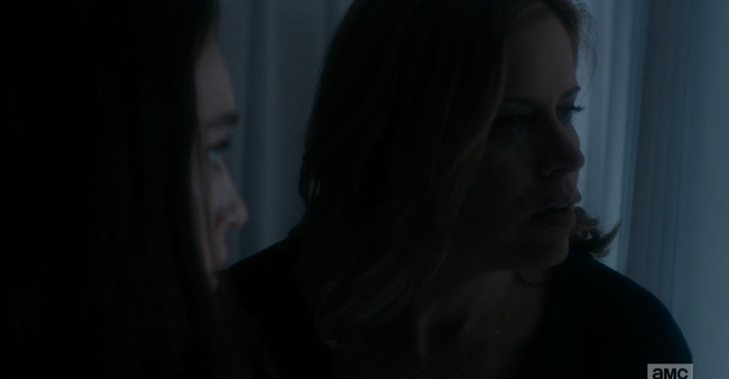 Madison turns and looks at Liza. “And if ever I end up like her, I need you to take care of it. Don’t make Travis do it. It would break him.” (Besides marveling at what a badass Madison is in this scene, I was left with the sinking feeling that she may be foretelling her own death, and future events to follow, at some point as the FTWD storyline unfolds…and I would really hate that, because she is becoming one of my fave characters in this show.) ❤
