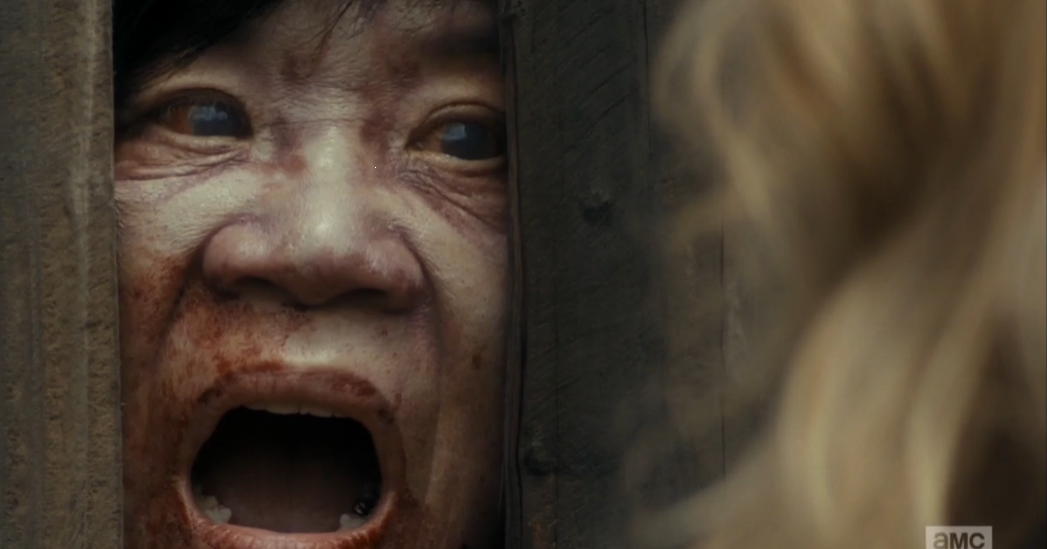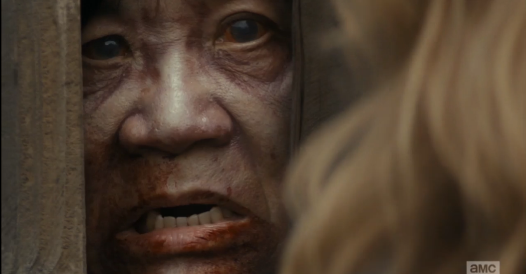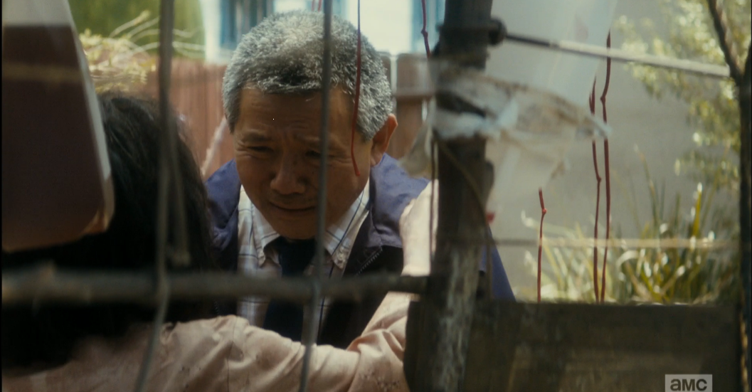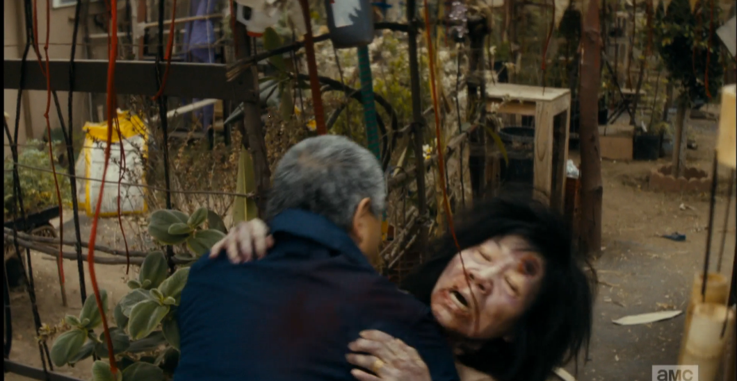 …rather, what used to be his wife. (So sad, especially when I think that if this zombie apocalypse wasn’t all going down, poor Patrick Chan would have come home to a dead wife, an empty bottle of pills, and a suicide note…either way sucks so bad for this nice-seeming man who just wanted to get back home to his wife!) 😦