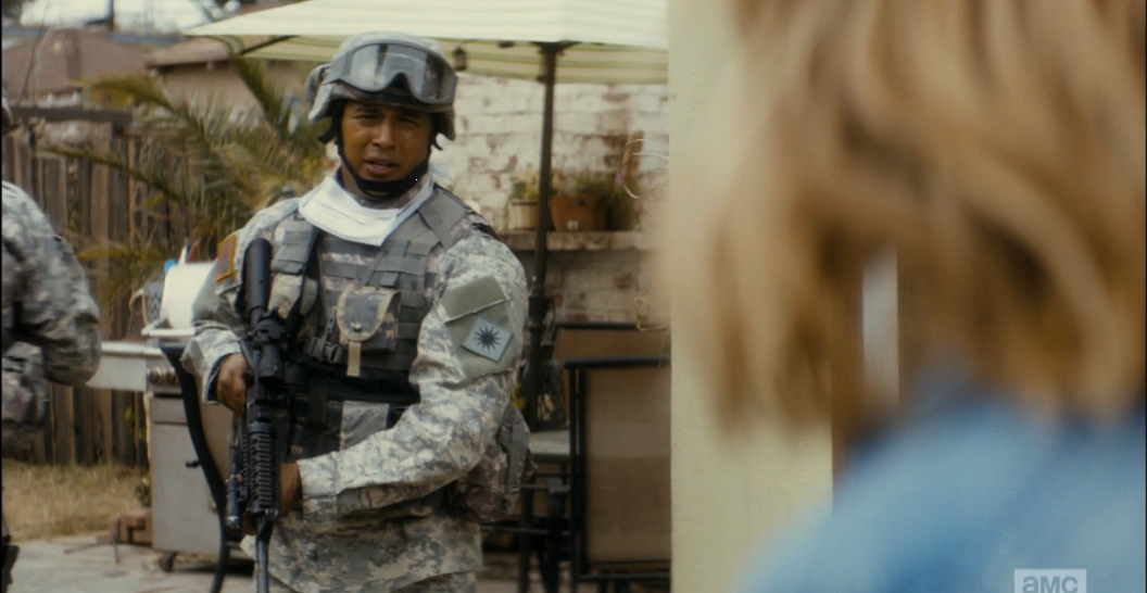 The soldier replies that he was covered in “the infected’s blood.” Madison asks if blood is how it’s transmitted, and the soldier does not answer, asks her instead if anybody in her household has been exposed…Madison lies, says no.