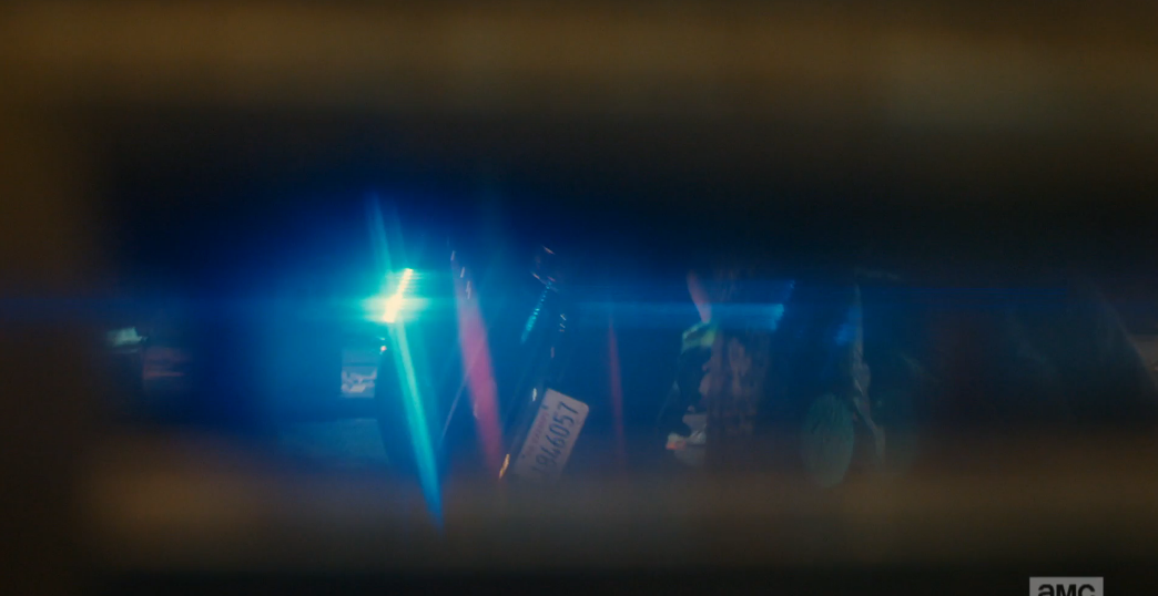 As the upside-down squad car’s lights flash helplessly, a figure approaches, faces Chris…