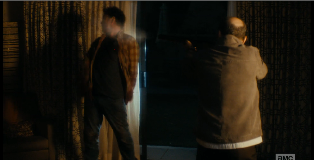 After taking out the garbage, and sharing a mutual vibing session with a biker-looking live neighbor doing the same, Travis returns to find Daniel showing Chris the workings and parts of the shotgun he used to rekill Peter Dawson’s reanimated corpse just the night before.