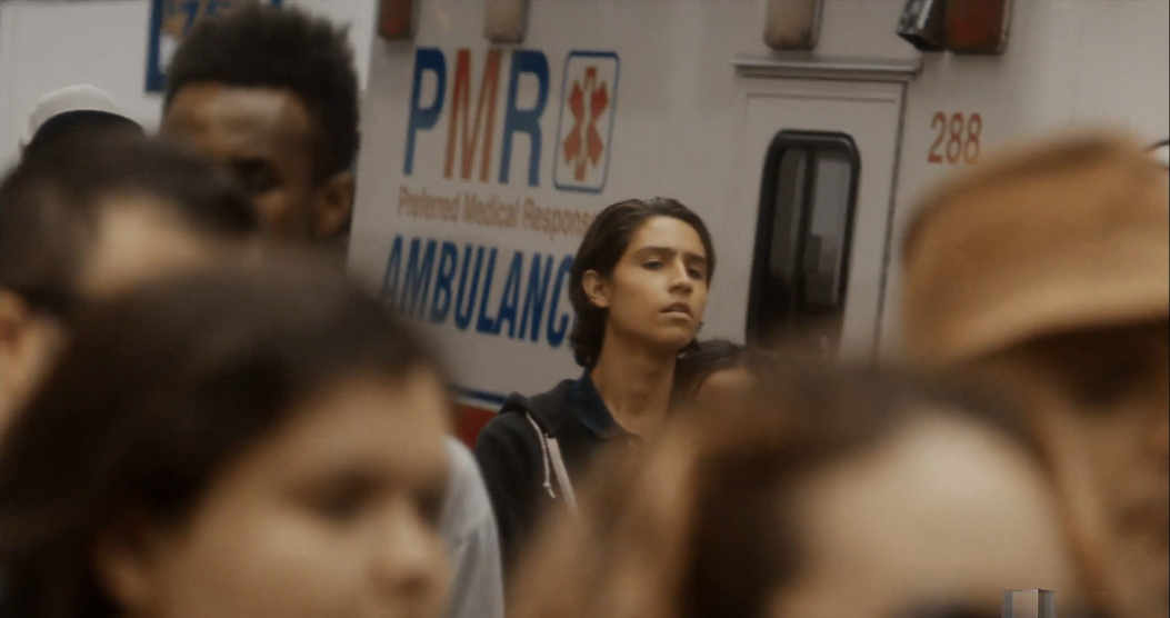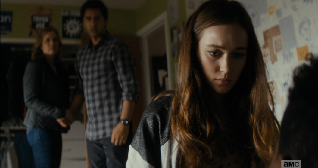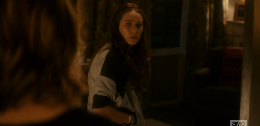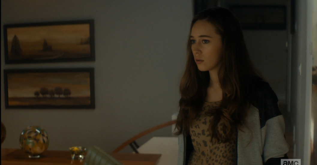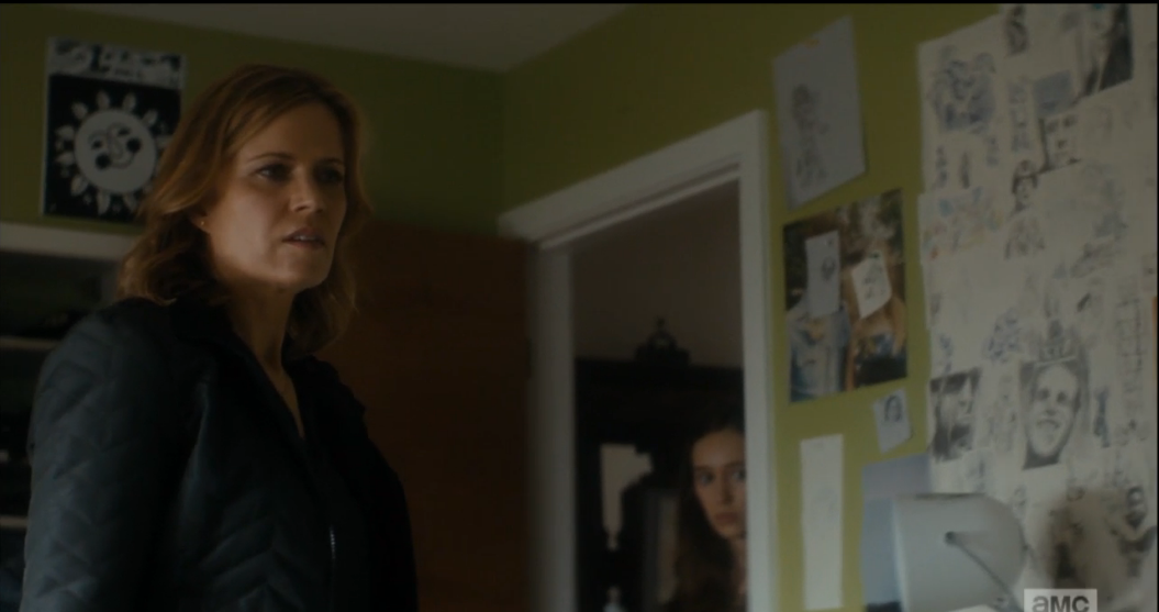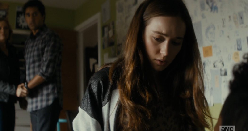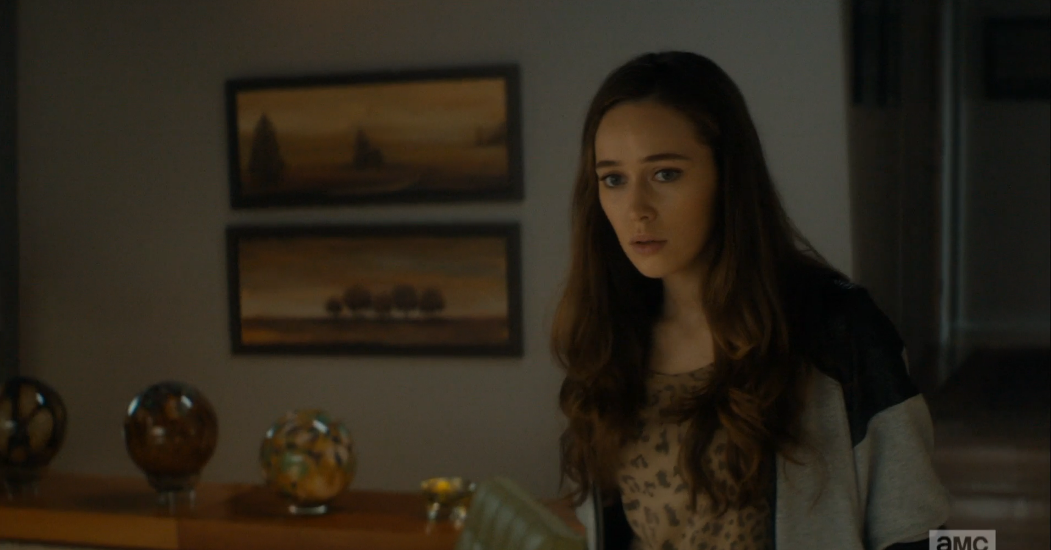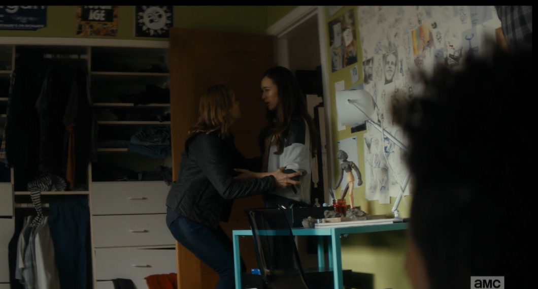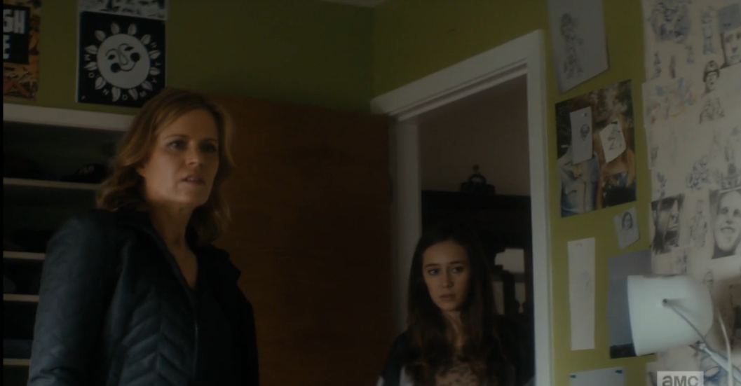Madison (walking towards Alicia and guiding her back away from the room): “I’m gonna call 911 from outside.” Alicia: “Fine, I’ll wait for them here…” Madison: “Get outside.” Alicia: “Mom…!”