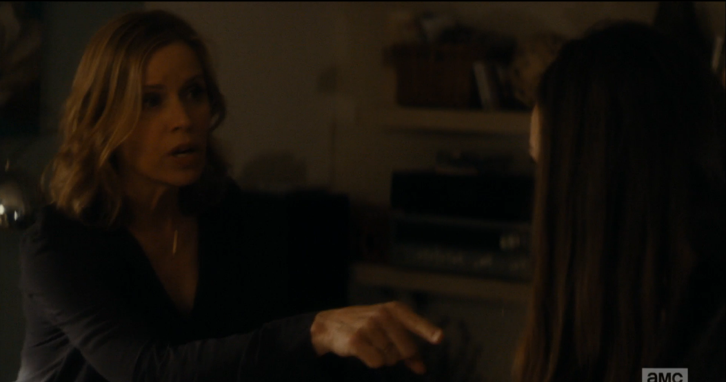 Madison emerges from her bathroom to find Alicia sitting there. Alicia takes one look at her mother’s tear-stained, striken face and asks, “What the hell happened?”