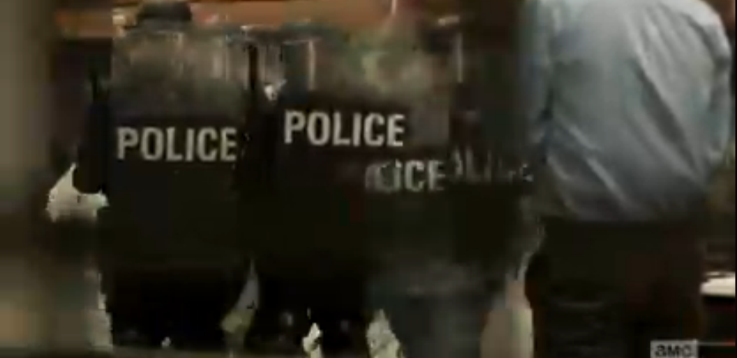 Chris (looking through the spaces in the window barricade): “This is insane.” Travis: “Chris, get away from the window…you don’t want to see anything out there.”