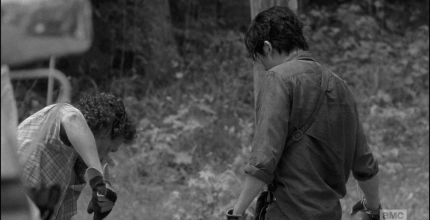 building 1 Published October 21, 2015 at 1064 × 546 in The Walking Dead, Season 6, Episode 1, “First Time Again” Time shifts back, to the barrier construction, as Glenn and NIcholas work, side by side.