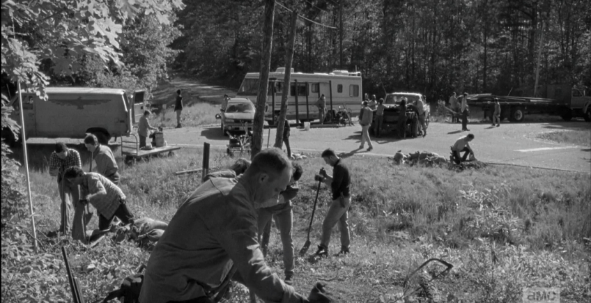 building barrier 1 Published October 21, 2015 at 1062 × 546 in The Walking Dead, Season 6, Episode 1, “First Time Again” Time shifts back again, and we see the beginning of the construction of the barrier.