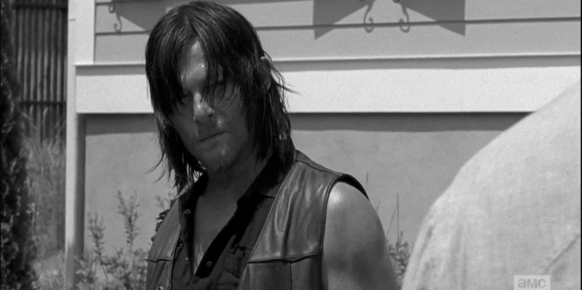 Daryl says nothing, but his look seems to say, “But we were people out there, not that long ago, and we’d still be out there if Aaron and Eric hadn’t found us.” Rick tells Daryl that he will let Morgan out soon, that they shouldn’t keep him “in there” any longer than they have to, and turns, walks away, leaving Daryl to process all this.