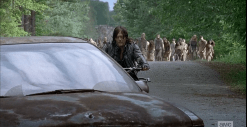 daryl road 2 car Published October 18, 2015 at 1065 × 548 in The Walking Dead, Season 6, Episode 1, “First Time Again” Sasha and Abraham meet up with Daryl in the Astoundingly Ugly Car.