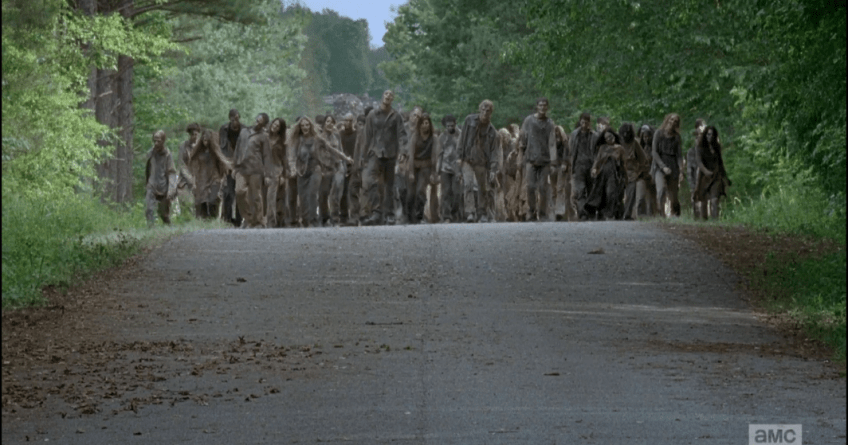 daryl road 4 walkers on parade Published October 18, 2015 at 1064 × 559 in The Walking Dead, Season 6, Episode 1, “First Time Again” Here comes the Parade of Walkers.