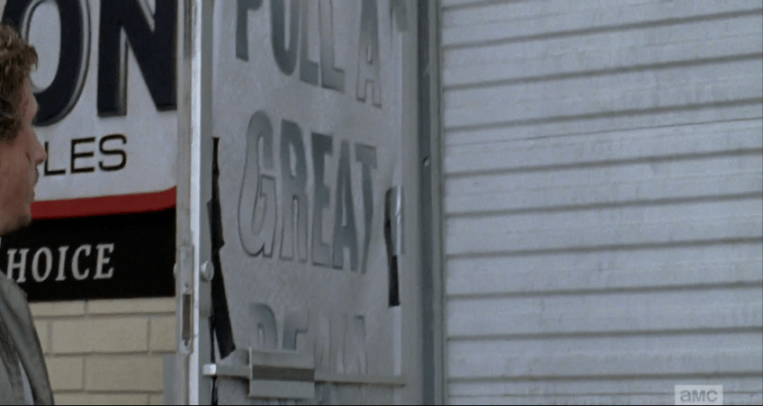 glenn tractor store 4 Published October 18, 2015 at 1059 × 564 in The Walking Dead, Season 6, Episode 1, “First Time Again” Glenn counts down, and Nicholas pulls the door open to reveal…metal security door! “Shit!”