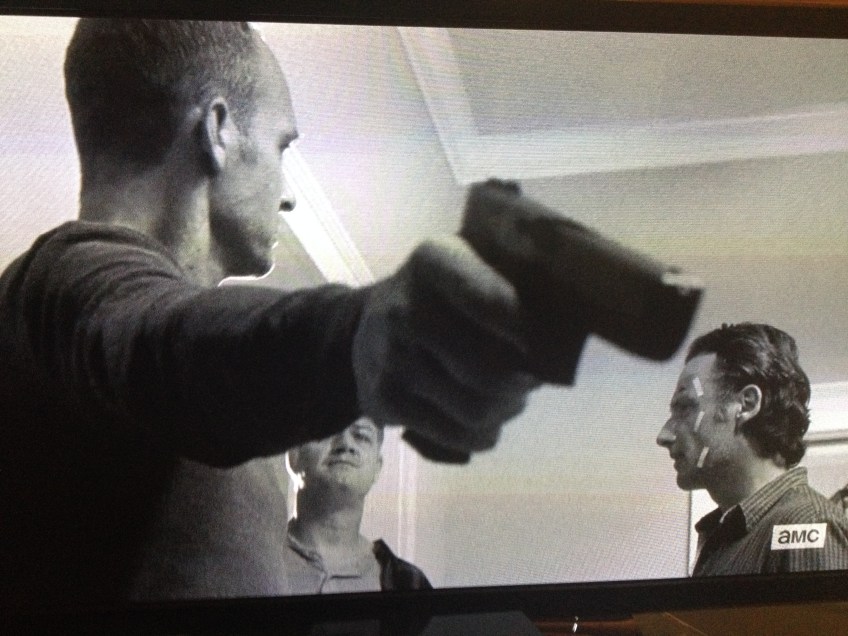 IMG_5102 Published October 21, 2015 at 3264 × 2448 in The Walking Dead, Season 6, Episode 1, “First Time Again” Rick Smash! nods, taking this in. “Shit, I would have set up some lookouts…”
