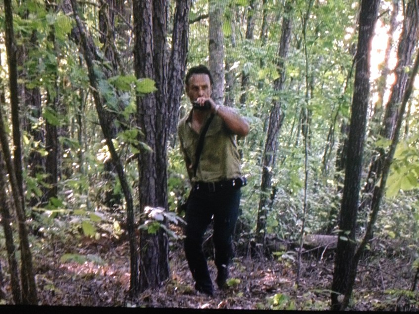 IMG_5150 Published October 21, 2015 at 3264 × 2448 in The Walking Dead, Season 6, Episode 1, “First Time Again” Rick can see the walkers are veering off from the road, but doesn’t yet know why…he radios Tobin, then rushes to see what is happening…