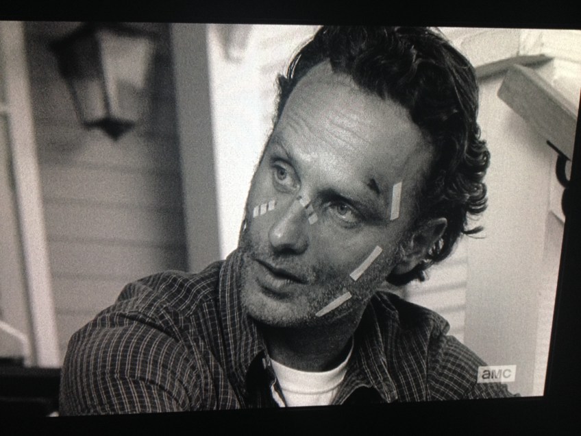 IMG_5175 Published October 21, 2015 at 3264 × 2448 in The Walking Dead, Season 6, Episode 1, “First Time Again” Rick looks at Morgan a moment…