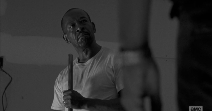 morgan jail 11 Published October 18, 2015 at 1052 × 554 in The Walking Dead, Season 6, Episode 1, “First Time Again” And says nothing.