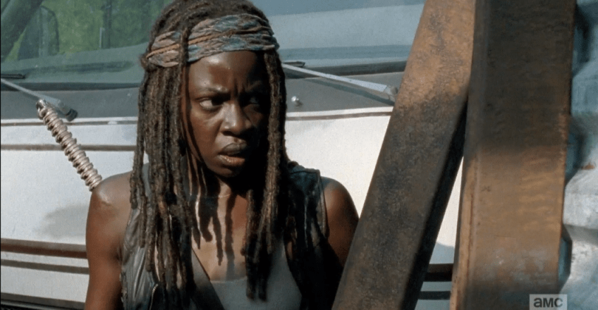 parade 4 michonne Published October 21, 2015 at 1060 × 551 in The Walking Dead, Season 6, Episode 1, “First Time Again” Michonne fires a flare, then edges closer, bracing herself, peering through the corner…