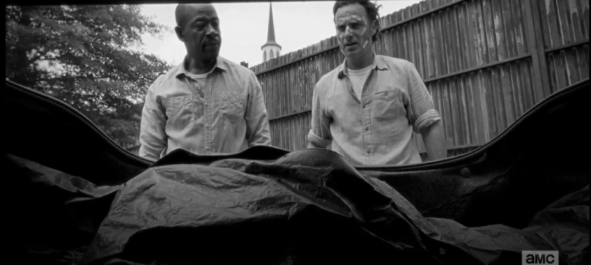 pete’s body 2 Published October 18, 2015 at 1073 × 482 in The Walking Dead, Season 6, Episode 1, “First Time Again” Morgan looks over at Rick. “I’m a killer, Rick. I am, and you are, too.”