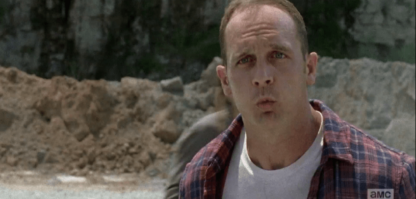 Carter looks like he’s about to cry. “Rick, we’re not ready!” Too bad, so sad, Carter. Fucking get ready, do this shit, and you can cry about it later. (Even though Carter is a weenie, the actor who plays him, Ethan Embry, is completely awesome, total TWD fan who auditioned for various roles on the show 5 or 6 times before getting cast as Carter.)