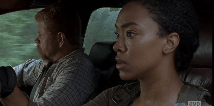 sasha car 2 you good Published October 18, 2015 at 1066 × 529 in The Walking Dead, Season 6, Episode 1, “First Time Again” As the car speeds down the road, Abraham looks out the window, asks Sasha, casually, “You good?”