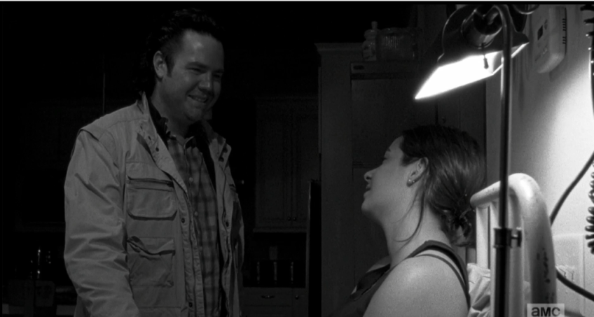 tara rosita 7 eugene ok eugene Published October 17, 2015 at 1061 × 567 in The Walking Dead, Season 6, Episode 1, “First Time Again” As Eugene keeps looking down, smiling at her, Tara says, “Ok, Eugene…”