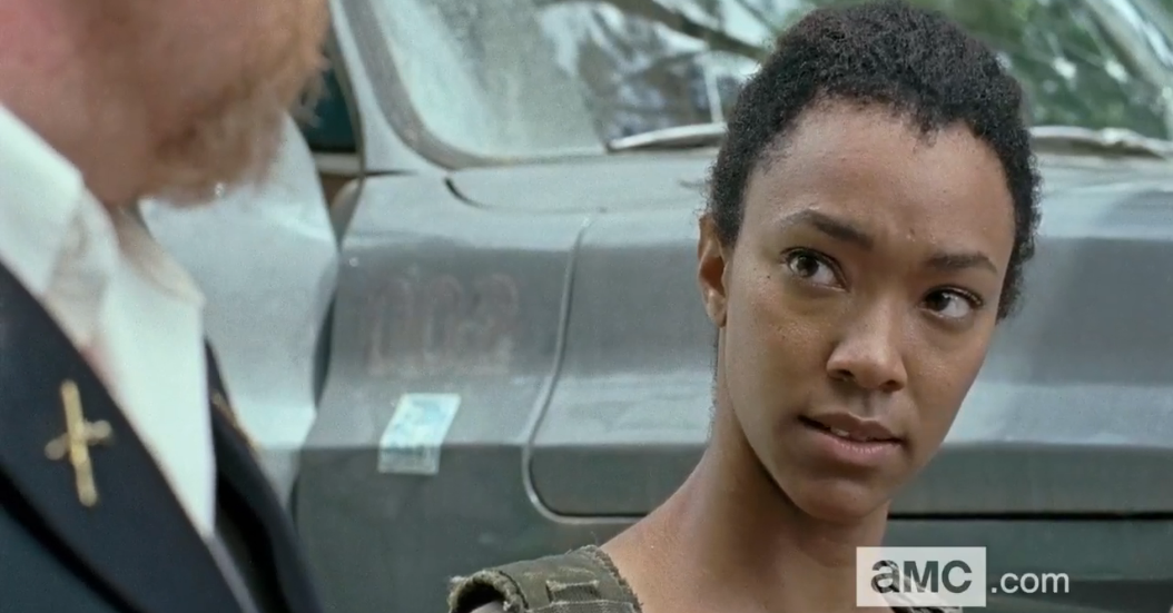 shot 60 sasha replies i am talking to the man Published February 11, 2016 at 1054 × 551 in TWD’s VDay DDay: Season 6 Halftime Report Sasha Fierce looks back at Abraham, completely annoyed, and whispers, “I am talking to the man.”