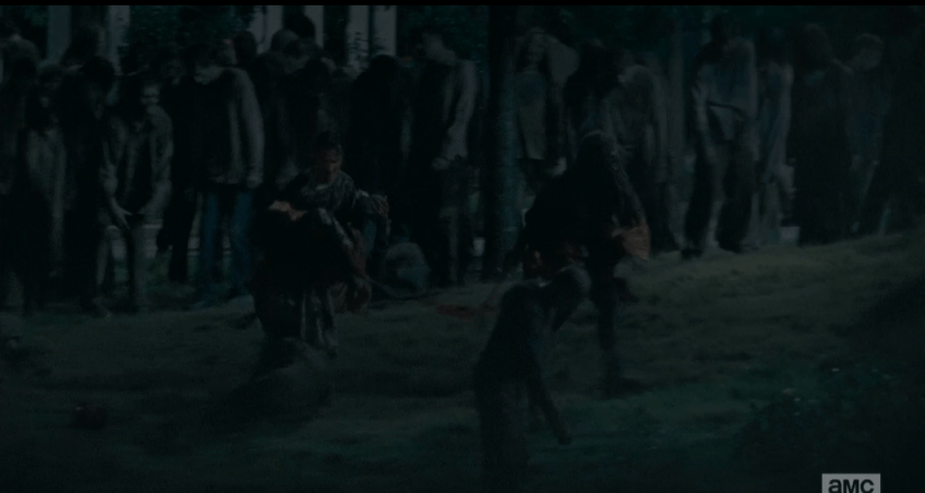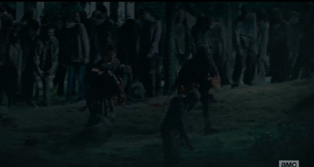 aaron sees rick and michonne Published February 25, 2016 at 1055 × 563 in TWD, Season 6, Episode 9, “No Way Out” Rick and Michonne running, Rick carrying his unconscious, bleeding son in his arms, as Michonne hacks a path through the walkers to clear the way to the infirmary.
