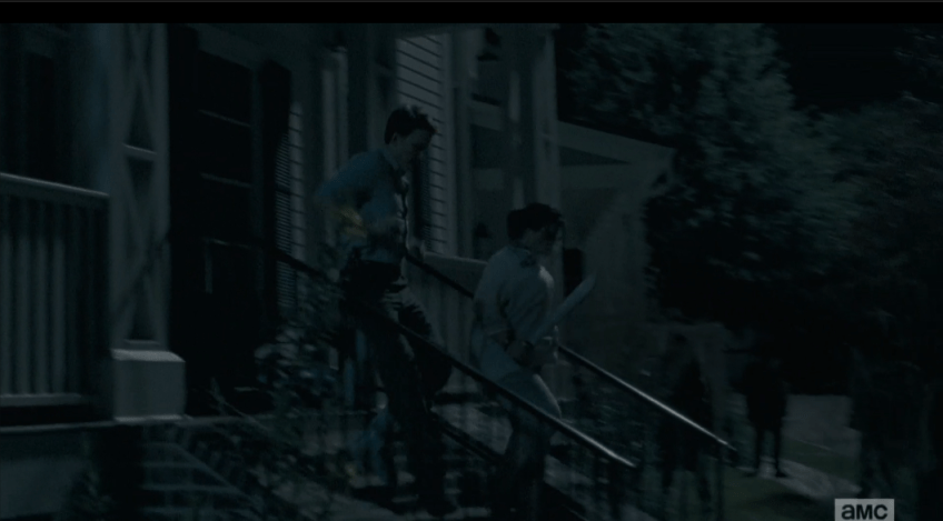 calvary 12 second string eric and olivia Published February 26, 2016 at 1059 × 586 in TWD, Season 6, Episode 9, “No Way Out” …the second string, machetes in hand, running down the steps to join the fight! Yahoo!