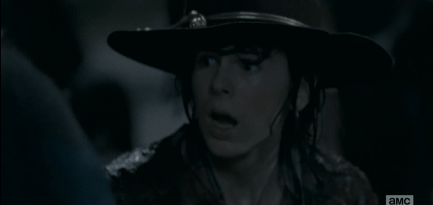 carl shock 2 Published February 22, 2016 at 1054 × 500 in TWD, Season 6, Episode 9, “No Way Out” Carl’s voice cuts through Rick’s reverie: “Dad…Dad!” Rick looks over, dazed, to see Carl’s hand still held fast in Jessie’s now-death grip…