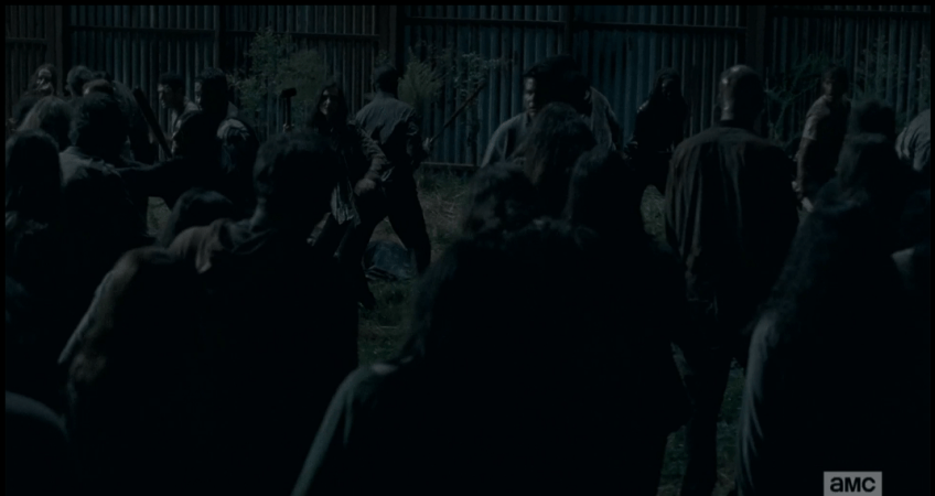 end 8 Published February 26, 2016 at 1071 × 569 in TWD, Season 6, Episode 9, “No Way Out” …until they are nearly backup up against the walls.