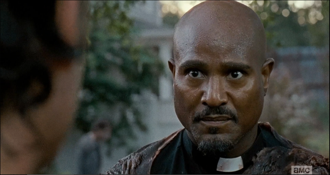 Rick looks into Gabriel’s eyes, measuring this. I looked into Gabriel’s eyes as well, and after a brief wave of creepiness and trepidation, I believed Gabriel would keep his word and do his best to protect Judith…and as we’ve seen in previous episodes, Gabriel def has some walker killing skillz!