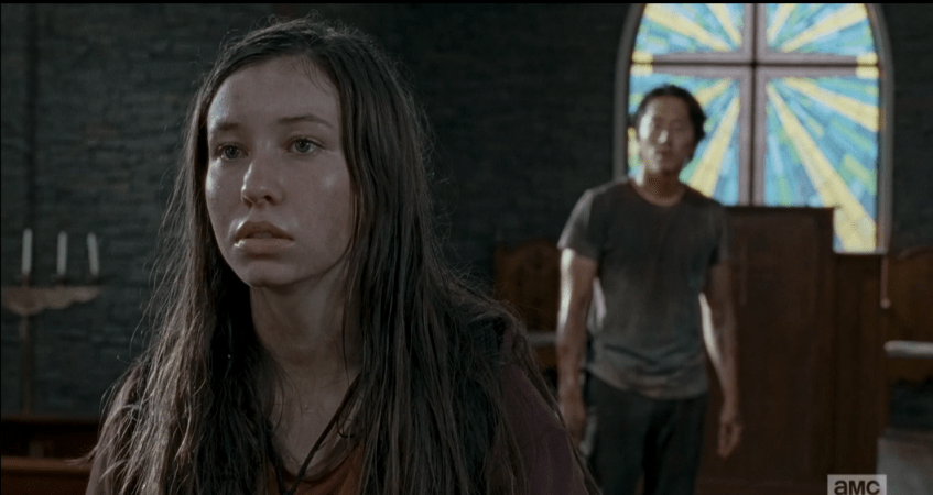 Glenn finally turns around and is like, “WTF Enid?” and Enid’s all like, staring and mopey and like, “When I wanted to run, you said that’s how you lose people…” and then it was all like, wah, wah, wah, my parents died, everybody dies, what’s the point? and Glenn was like, “You do it because you’re here, they’re not, and so you do it for them,” and Enid was like, “Ohhhh…” and I was like, “Come on, already!” and Enid’s all like, who were your people ?