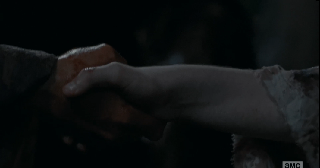 I…cannot. (Honestly, of all the gnarly screenshots I have posted on this site, I think this shot, of Jessie holding her son’s hand as he gets eaten alive by walkers, has gutted me more than any other picture I have ever captured and posted. I am so glad this isn’t fucking real, that Major Dodson and Alexandra Breckenridge are alive and well. Greg Nicotero, I will be sending you the bill for all the therapy I am going to need after watching, and rewatching this scene.)