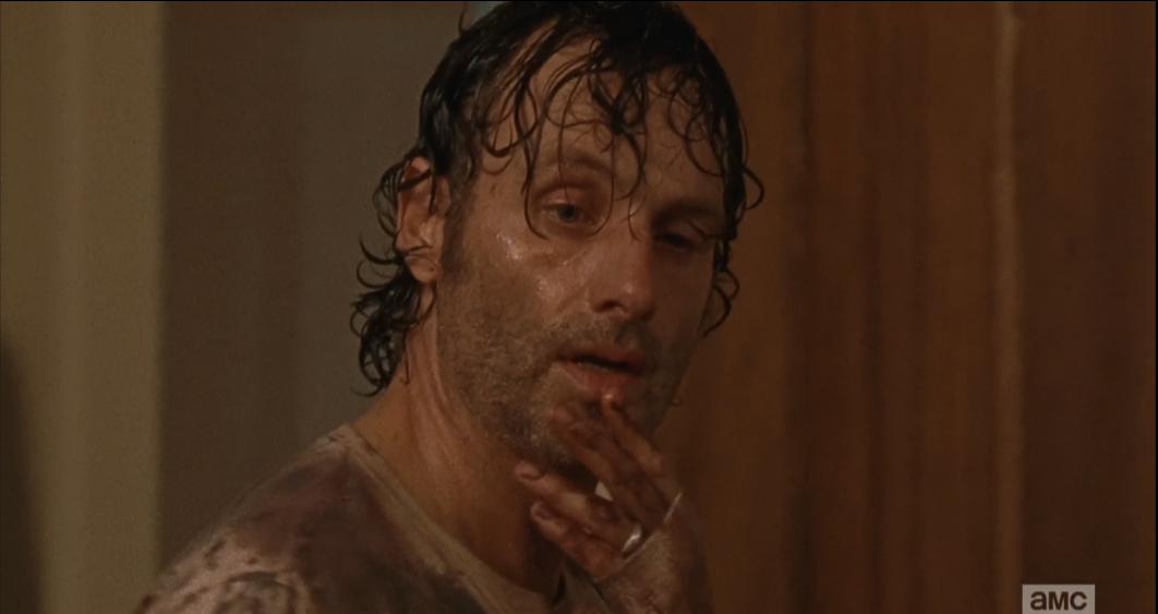 rick dad 3 Published February 25, 2016 at 1062 × 563 in TWD, Season 6, Episode 9, “No Way Out” Rick turns away, head in hand, then turns back as Denise begins to operate on Carl, ordering Michonne to apply pressure to Carl’s head, above the eye, to try to limit blood loss…
