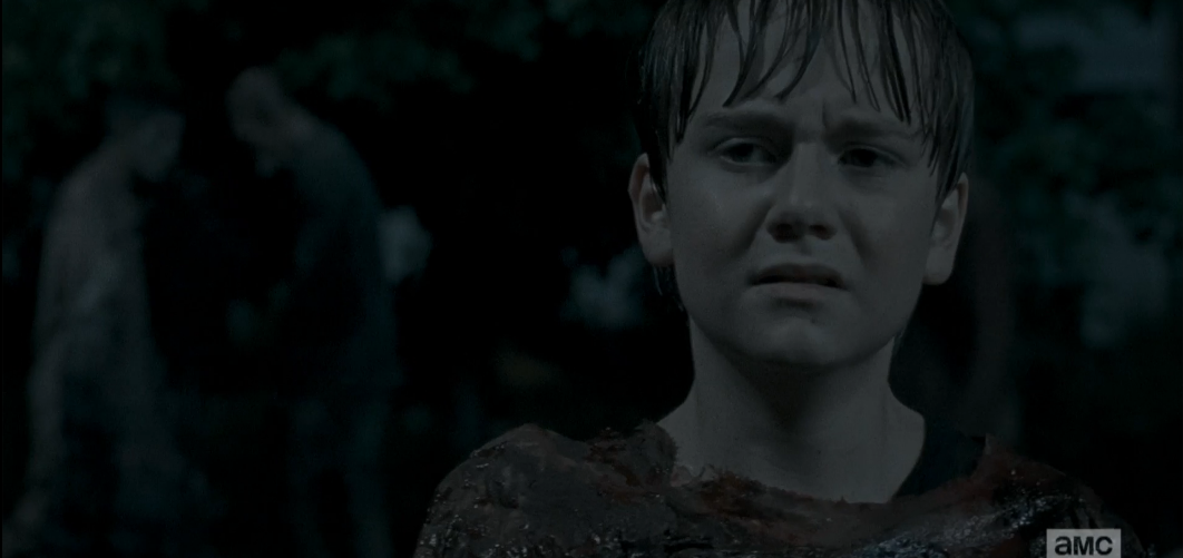 sam resigned Published February 22, 2016 at 1062 × 501 in TWD, Season 6, Episode 9, “No Way Out” This shot really gets me…it felt to me like Sam had already resigned himself to his unspeakable fate before the walkers’ attack.