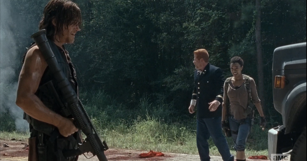 sasha abraham daryl 1 Published February 20, 2016 at 1062 × 559 in TWD, Season 6, Episode 9, “No Way Out” I love this look on Sasha’s face as she steps towards Daryl. She’s beaming, and nodding, and dazed, and so stoked, like, “Well, alright, then!”