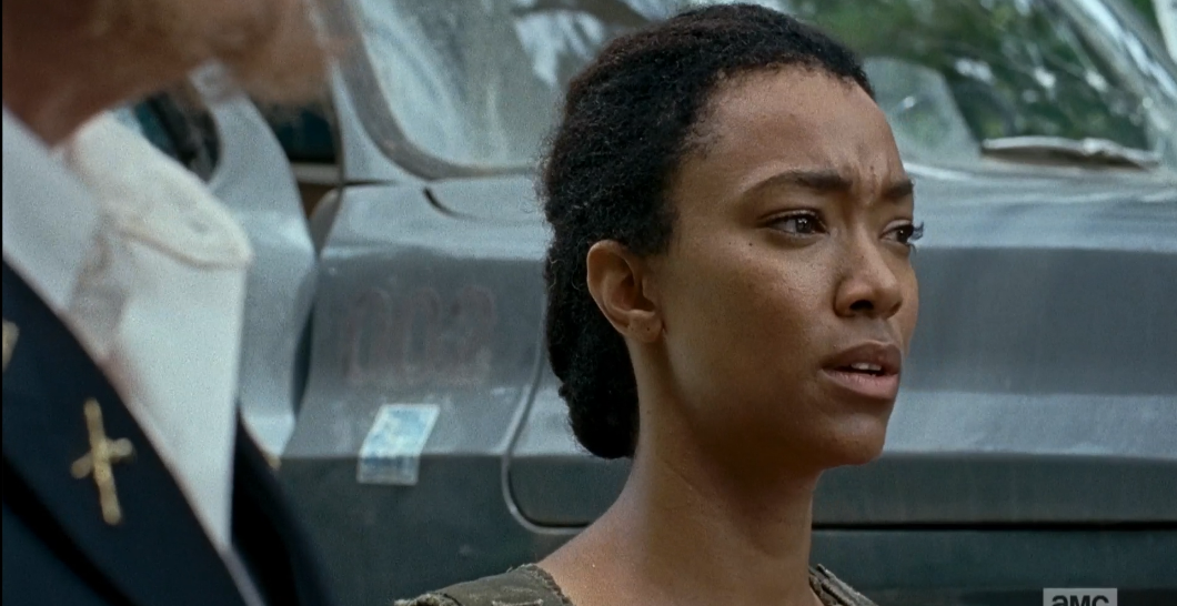 sasha looks relieved Published February 19, 2016 at 1060 × 546 in TWD, Season 6, Episode 9, “No Way Out” Sasha looks at Snidely, unsure of how to interpret this…