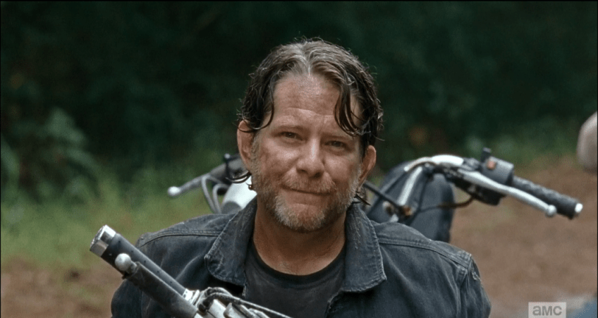snidely looks up 2 Published February 19, 2016 at 1062 × 565 in TWD, Season 6, Episode 9, “No Way Out” Snidely looks up at Sasha and Abraham with a sheepish grin…