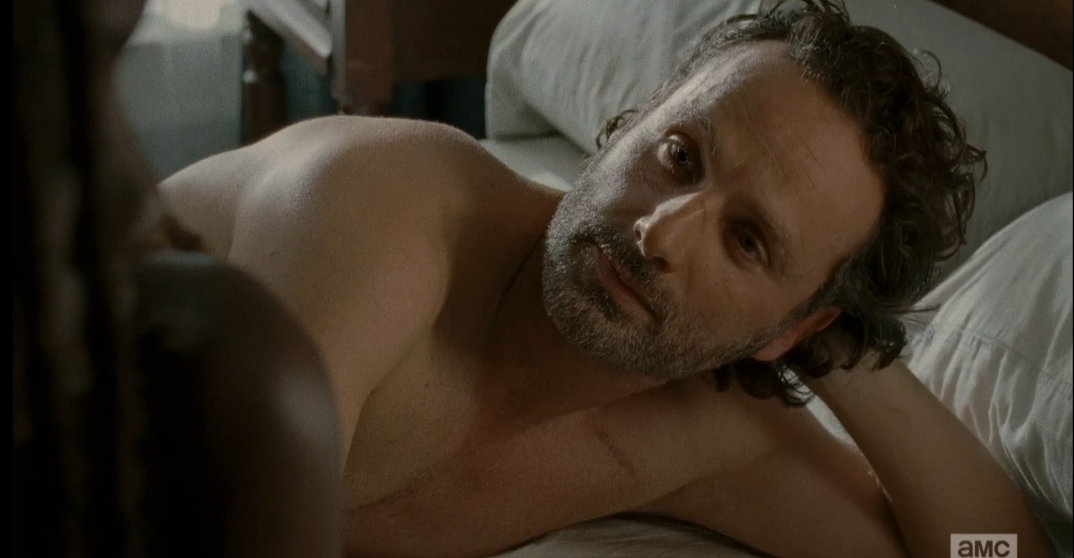richonne 20 everything we need is right here inside these walls Published April 2, 2016 at 1074 × 558 in TWD, Episode 615, “East” Rick: “Everything we need is right here, inside these walls.” (Everything I would need is right there inside that damn bed…Rick Grimes, naked, a snack for later…but, hey, that’s just me!) π