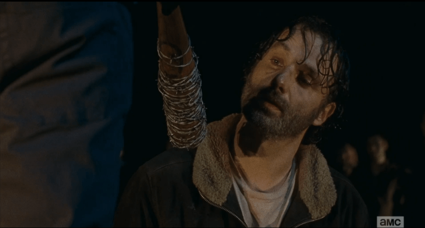 lm 103 lucille at rick’s neck Published May 28, 2016 at 1057 × 568 in The Walking Dead, Season 6, Ep. 16, “Last Day On Earth”