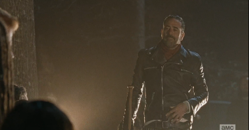 lm 167 Published May 31, 2016 at 1059 × 556 in The Walking Dead, Season 6, Ep. 16, “Last Day On Earth” …and continues his perusal of the kneeling gang.