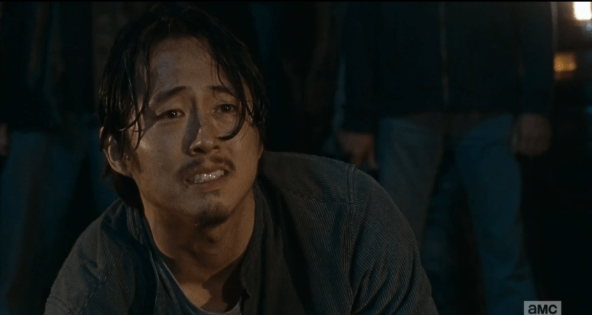 lm 172 glenn Published May 31, 2016 at 1057 × 563 in The Walking Dead, Season 6, Ep. 16, “Last Day On Earth” Glenn watches this, agonizing.