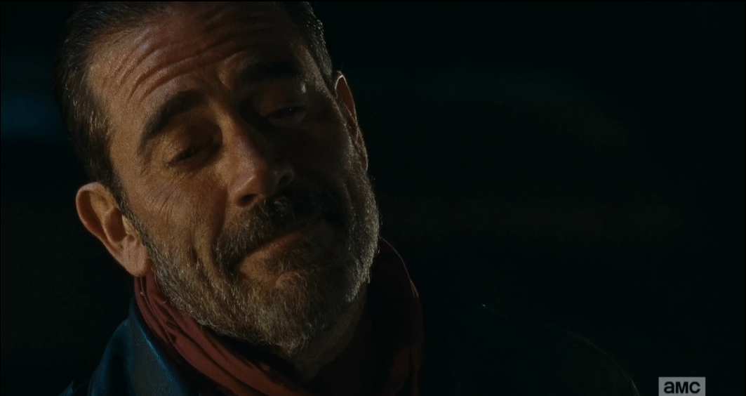 lm 204 negan looks at rick Published May 31, 2016 at 1063 × 564 in The Walking Dead, Season 6, Ep. 16, “Last Day On Earth” Negan sees this, Rick’s inner struggle, and his eyes, as he looks down at Rick, almost soften with something akin to sympathy.