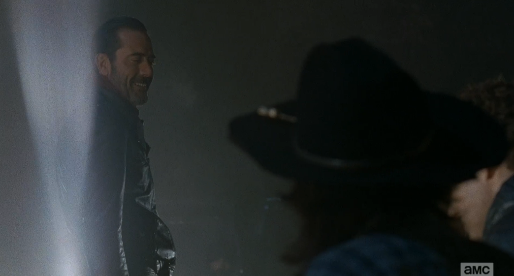 lm 212 negan looks back at rick Published May 28, 2016 at 1044 × 561 in The Walking Dead, Season 6, Ep. 16, “Last Day On Earth”